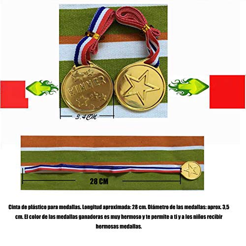 ✔️ Sprankelend metaal: medailles met lengte van het lint ca. 28cm; medailles diameter ca. 3,5 cm. Elke lintkleur is rood, wit en blauw. De kleur van de winnaar medailles is erg mooi en laat u en de kinderen prachtige medailles ontvangen. Voel je goed toekennen van deze fantastische ster medailles gemaakt vorm ijzer en horloge ogen oplichten. Zeker een blijvende herinnering van elke gebeurtenis.