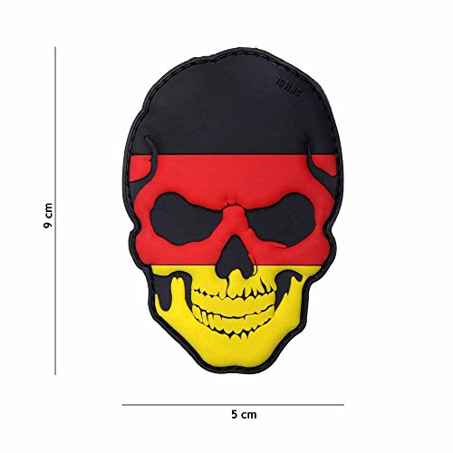 Patch / embleem 3D PVC “Skull Duitsland” Hoogwaardig 3D-embleem met haakklittenband op de achterkant (genaaid, niet gelijm!) voor het bevestigen aan kleding, rugzak en nog veel meer. Met haakklittenband op de achterkant & tegenstuk embleem is met het klittenband genaaid, niet gelijmd Materiaal: PVC afmetingen 5 x 9 cm Levering: 1 (in) 3D patch PVC “Skull Duitsland”