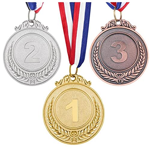 Specification: 3 stks Metalen Award Medailles met Neck Ribbon Goud Zilver voor Sport Academics of Elke Wedstrijd Tarwe Patroon
