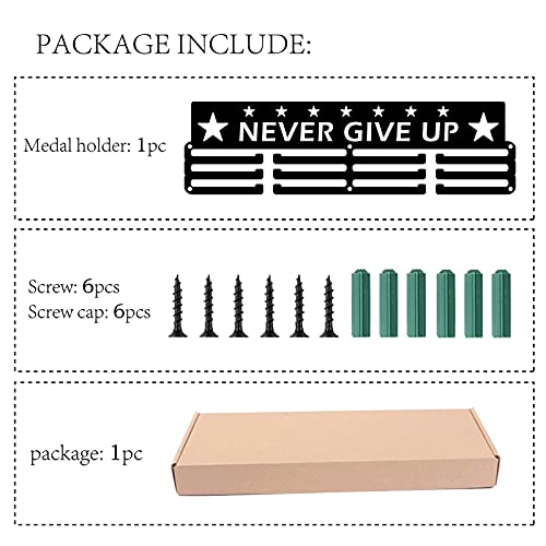 [INSPIRATIONAL WORDS DESIGN]: Unieke medaille design combinatie van Engelse woorden “never give up” afbeelding vijfpuntige ster, toon je medailles royaal. Geschikt voor elke plaats die u wilt versieren, opknoping in de gang, woonkamer, slaapkamer, laat uw glorie schitteren