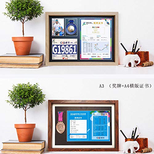 Specification: FTYYSWL A3 formaat Marathon houten medaille display frame creatieve badge montage fotolijst medaille opbergdoos set up muur fotolijst-G