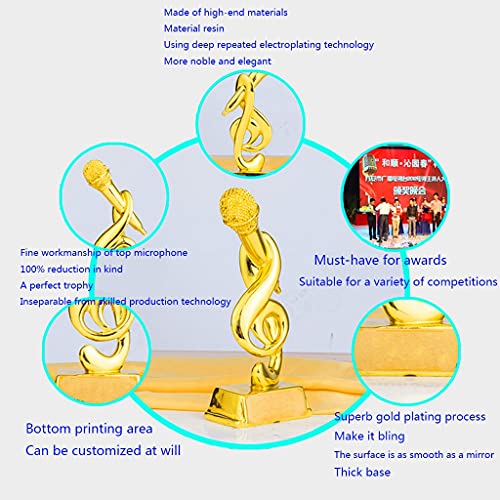 Specification: Goede Stem Muziek Trofee/microfoon Award/hars Trofee Verguld/host Trofee/waardering Cadeau/sport Award/beste Cadeau (Color : Gold, Size : 20 * 10 * 4.5cm)