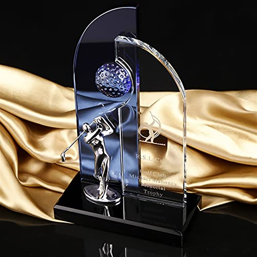 Golf Trophy, Crystal Golf Medaille, Aangepaste Belettering, Sports Herdenkings Trofee, Marmeren Base (Color : Clear, Size : 24 * 14 * 7cm)
