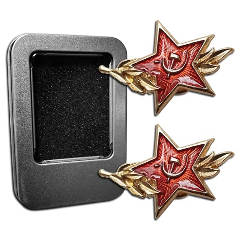 Kocreat Exemplaar 2 Stks Sovjet Red Star Hammer Sickle Medaille-WW2 USSR Militaire Badge CCCP Souvenir Badge Orde van de Patriottische Oorlog Cap Reversspeldjes Medaille Replica