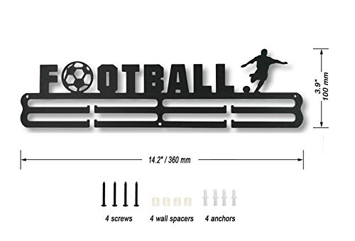 Hoogwaardige kwaliteit: medaillehangers van lasergesneden staal en met de hand gecoate zwarte afwerking met de beste materialen. Medaille display hanger is ongelooflijk stevig en solide. Voetbal medaille hanger rack is perfecte vooruitzichten en duurzaam zorgt voor een langdurig gebruik.