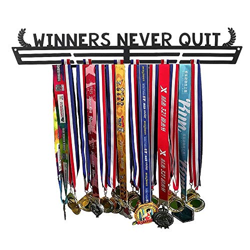Specification: Medaille Rack Sport Medaille Hanger Houder Medaille Display Rack “Winnaars Nooit Stoppen” Thema Zwarte Muur Opknoping Houder Geschikt Als Geschenken Voor Atleten