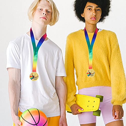 NUOBESTY Gouden Medaille Award Set Sport Ontmoeten Medaille Basketbal Winnaar Medaille Met Lint Partij Gunst Medaille Voor Concurrentie Sport Party 2 Stuks