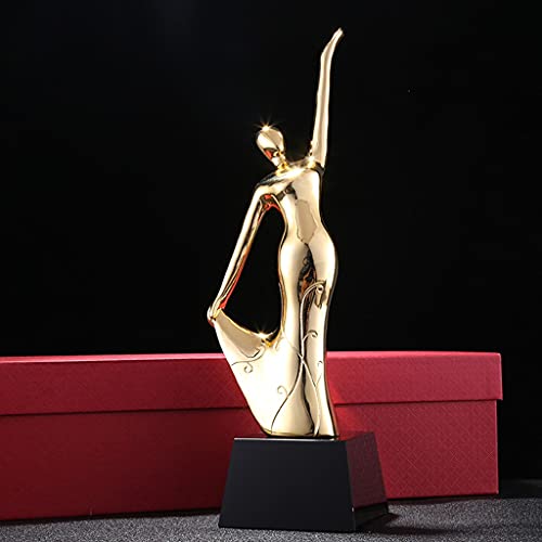Specification: Trofeeën Trofee Hars Ambachten Competitie Trofee Danskampioen Gouden Trofee Gratis Belettering Geef Rode Geschenkdoos (Color : Gold, Size : 8 * 8 * 28cm)