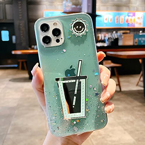 TYWZ Clear Sparkly Case voor Samsung Galaxy A32 4G, Bling Star Glitter Ontwerp voor Vrouwen Meisjes Zachte TPU Shockproof Anti-kras Beschermende Gevallen-Drink Groen