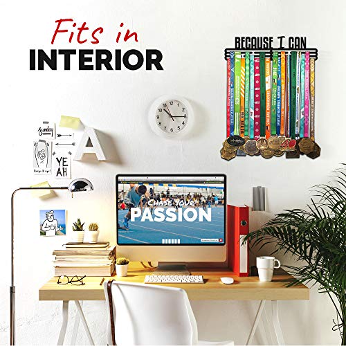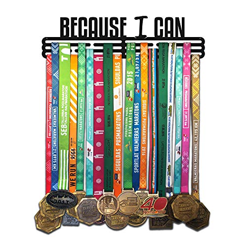 United Medals BECAUSE I CAN, Sport Medaille Hanger Display | Mat Zwart Staal houder medaillehanger (Max. 48 Medailles)