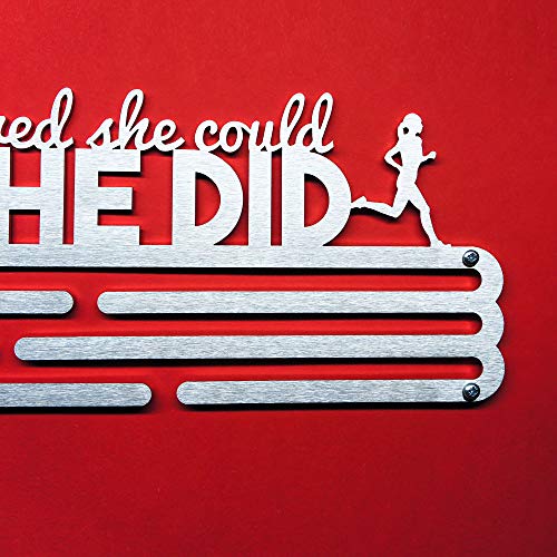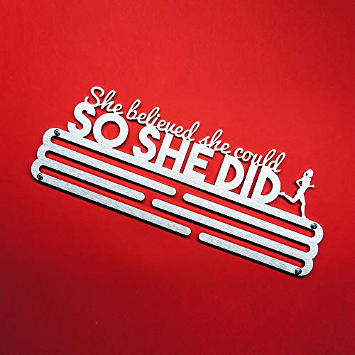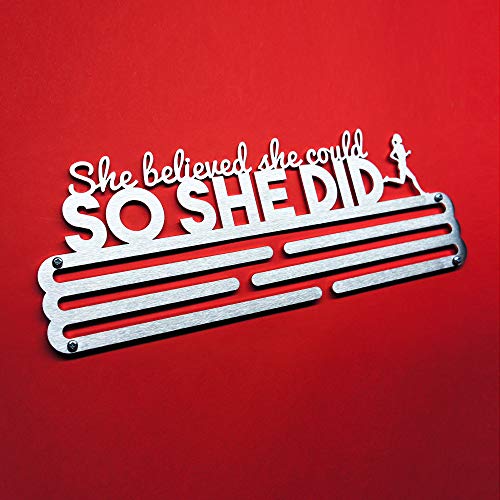 United Medals SHE BELIEVED SHE COULD SO SHE DID, Sport Medaille Hanger Display | Geborsteld Roestvrij Staal houder…