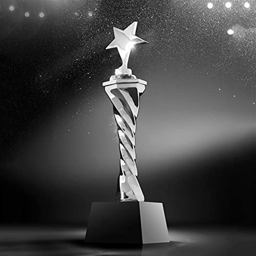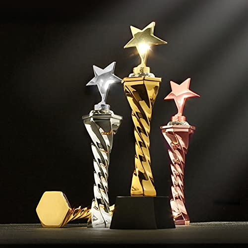 Specification: Vijfpuntige ster metalen trofee, gegraveerde kinderen geschenkprijs, driekleurige verhoogde trofee, wedstrijd trofee (Color : Silver, Size : 33 * 8 * 8cm)