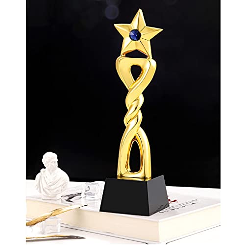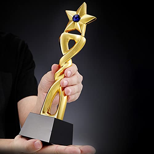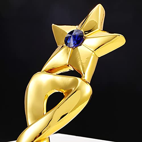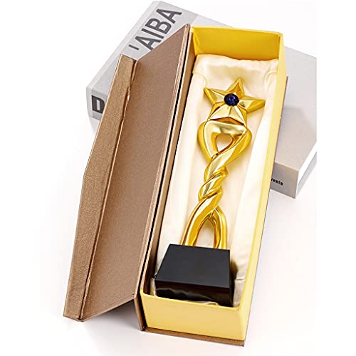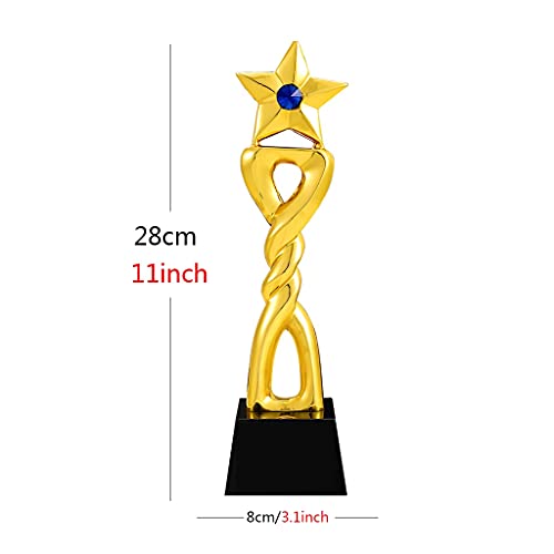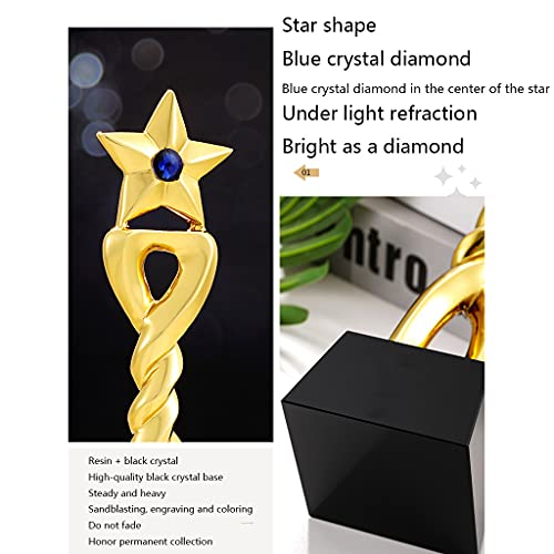 Specification: Vijfpuntige Sterharstrofee Blauwe Diamanten Kristallen Trofee Creatieve Metalen Prijstrofee Belettering Cadeau Voor Dierbaren Prachtige Geschenkverpakking (Color : Gold, Size : 28 * 8cm)