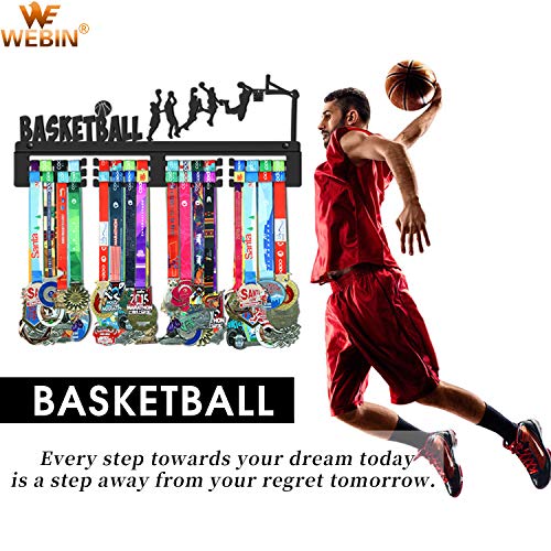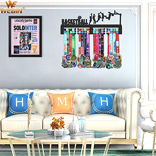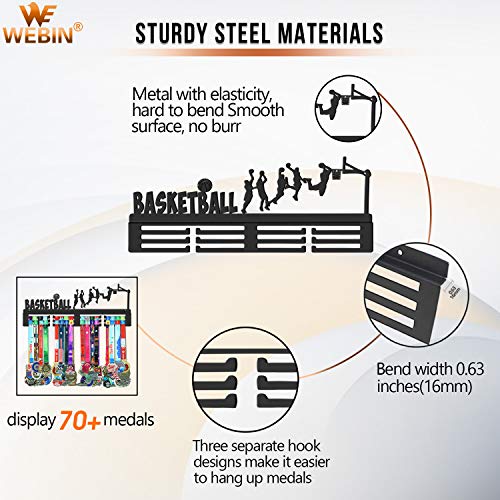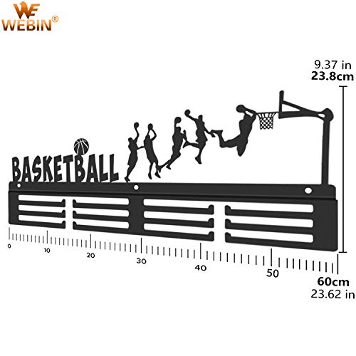 WEBIN Basketbal medaille hanger houder display rack, zwart super hard staal metaal, wandmontage meer dan 70 medailles